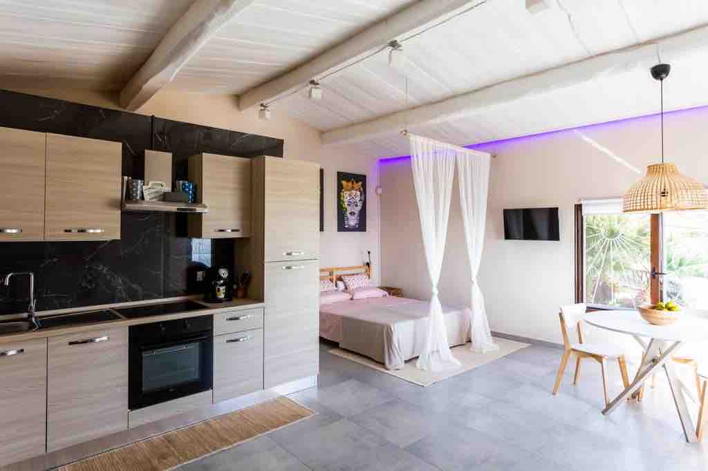Uma casa pequena, mas ao mesmo tempo "imensa" graças às grandes janelas de onde se pode desfrutar da vista para o mar e para o Etna. «Apelidada de “A casa no ar” pelos nossos hóspedes. Um telescópio para si, para ter uma vista ainda melhor da costa e de Sua Majestade, o Monte Etna!”. O espaço está dividido em duas áreas, área de estar e área de dormir. O pátio da entrada, coberto pela antiga alfarrobeira, oferece sempre ar fresco e regenerador. Divirtam-se, malta!
