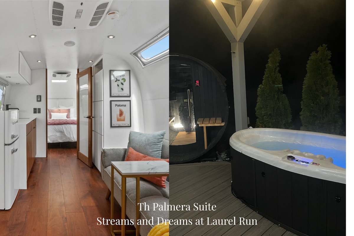 ✨ The Palmera Suite #2 All-Season Luxury Glamping in the Heart of Hocking Hills Streams and Dreams at Laurel Run by RLT Destinations— an upscale glamping escape just 50 minutes from Columbus. Each private Airstream offers high-end linens, plush towels, a full kitchen, and a spa-like shower. Outside, enjoy your own Trex deck with grill, dining area, smokeless fire pit, and private barrel sauna, 2 person hot tub, and private hiking Trail. Minutes from Cantwell Cliffs, Rock House & Lake Logan