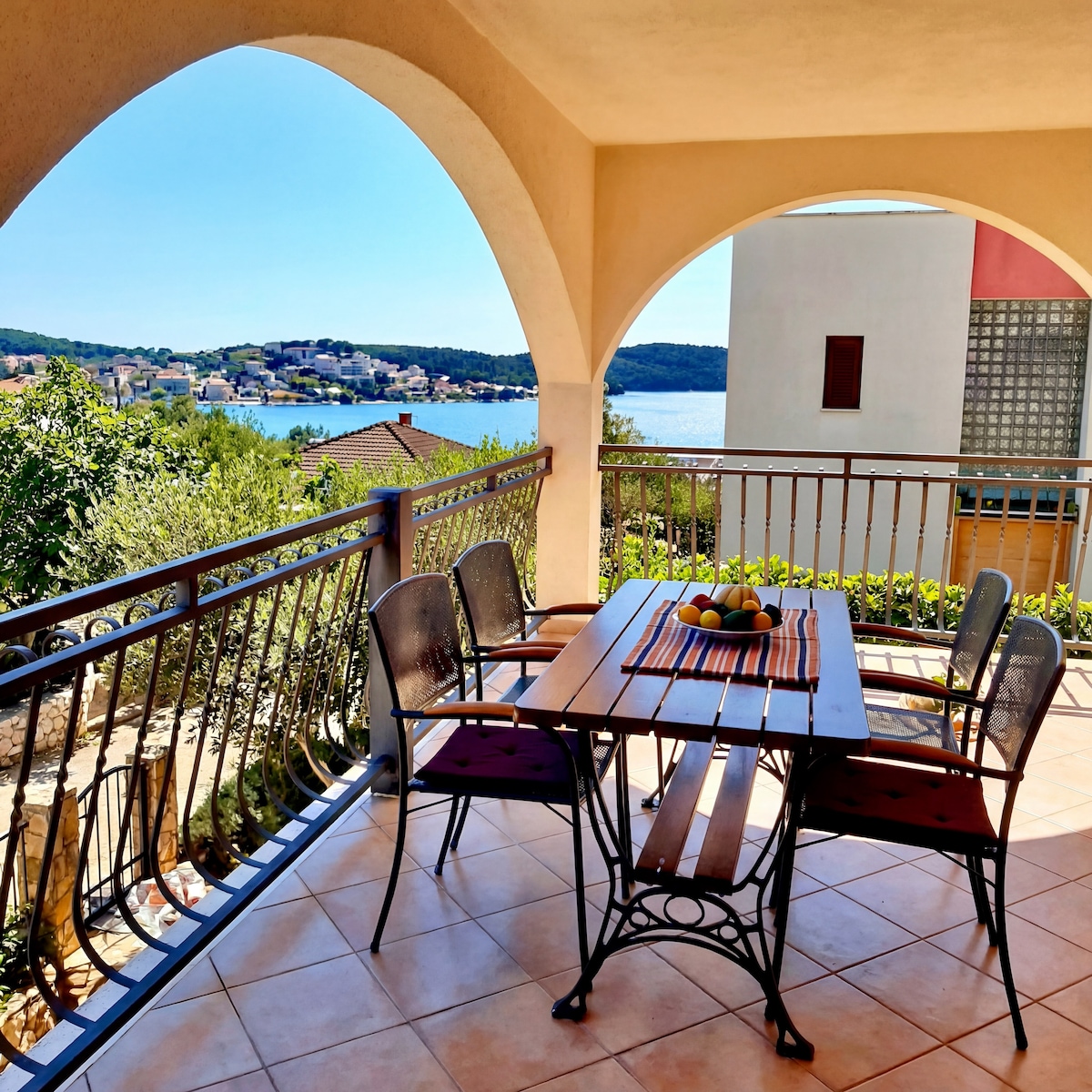 Ao lado da costa e do pinhal, no lado sul da Ilha de Čiovo, um apartamento no primeiro andar de uma bela casa de verão que oferece uma vista incrível para as ilhas de Brač, Hvar, Šolta e Drvenik. Varanda privada para desfrutar do seu café da manhã e bebidas à noite, uma área no jardim dedicada exclusivamente aos hóspedes para o uso de uma churrasqueira, uma mesa e um chuveiro ao ar livre certamente fará a diferença nas suas férias e proporcionará boas vibrações de verão para as suas férias.