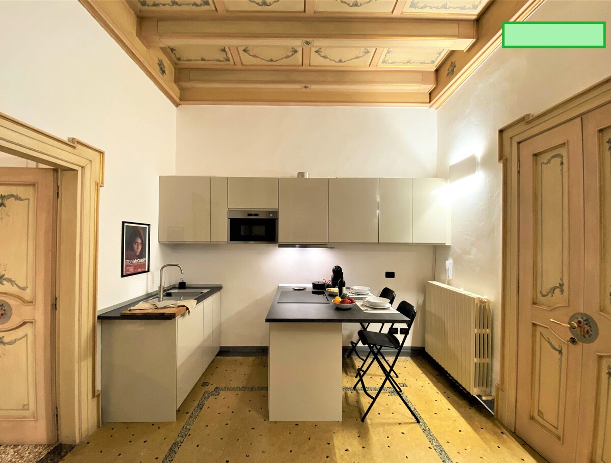 Bem-vindo ao coração histórico de Bolonha, onde a elegância se funde com a história em um apartamento único localizado na Piazza Roosevelt (a 200 metros da Piazza Maggiore). Este charmoso apartamento, com afrescos dos irmãos Carracci, famosos artistas bolonheses apreciados em todo o mundo, oferece não apenas um lugar para ficar, mas uma experiência imersiva na rica história e cultura desta cidade fascinante.