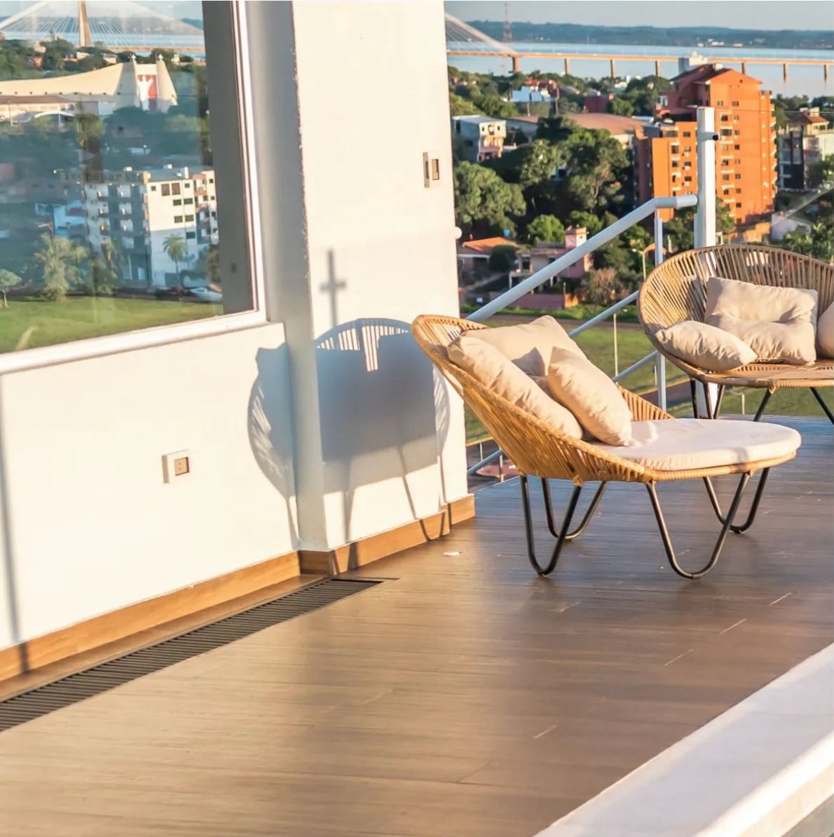 Apartamento com varanda com vista para o rio e excelente localização!📍. Caminhe até Costanera, Playa San Jose🏖️, restaurantes🍴 e Shopping Costanera🛍️. Quarto principal com cama de casal🛏️, sala de estar com sofá-cama(2,10 x 0,95 x 0,92)🛋️, sala de jantar, cozinha integrada e casa de banho moderna 🚿 Serviço de segurança 🔒 e lavandaria 24 horas por dia, 7 dias por semana dentro do para sua conveniência. Aires Divide-se no quarto e na sala de jantar.