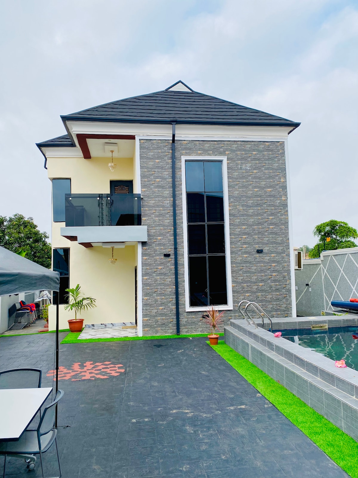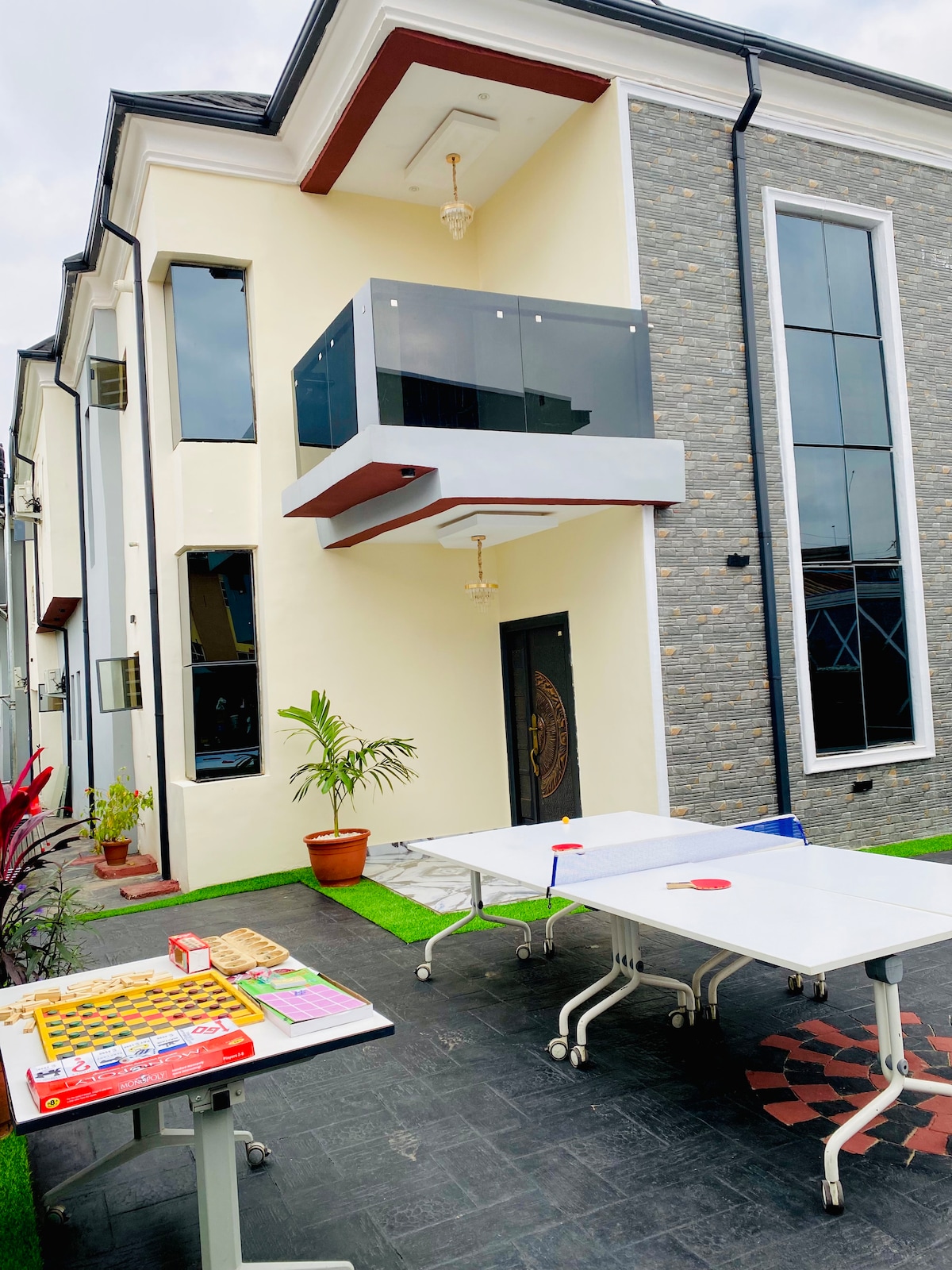 O luxuoso e encantador duplex de 5 quartos está localizado numa propriedade serena em torno da área reservada pelo governo, por isso é totalmente seguro e protegido. Temos um ginásio interno para o seu uso e também uma equipa no local para ajudar com as suas necessidades. Temos 2 Grandes salas de estar, 5 quartos, Ginásio Privado, varanda e área de refrigeração ao ar livre, Wi-Fi/ Internet gratuita para si com fonte de alimentação 24/7 numa moradia totalmente climatizada. Este espaço elegante para ficar também é perfeito para viagens em grupo.