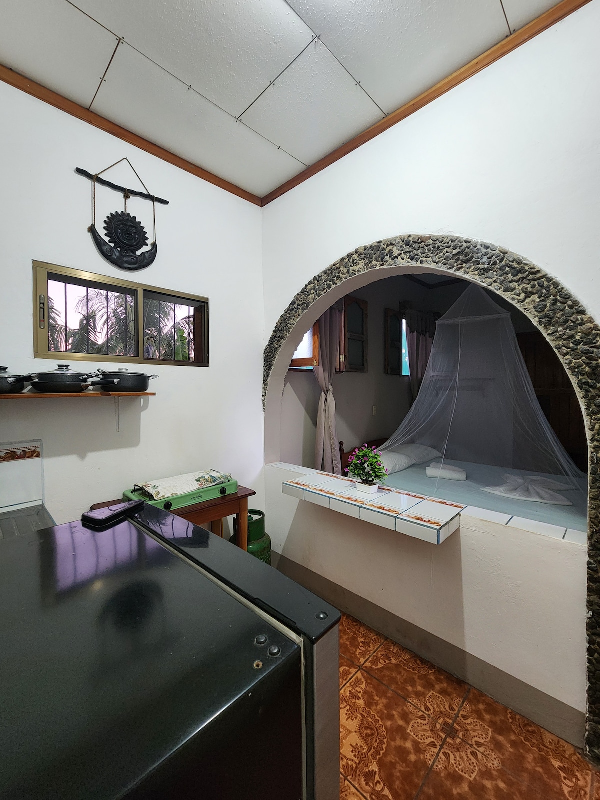 ISLA BONITA. É uma casa virada para o lago privado, rodeada por árvores e jardins, com 2 quartos, 2 casas de banho, um grande corredor com redes e uma sala de jantar. Durante a sua estadia nesta casa, pode desfrutar dos impressionantes pores do sol em frente ao vulcão Concepción, nadar se lhe apetecer, alugar um caiaque para remar até à Playa Mango ou ao Río Istían. No lado esquerdo da casa, temos uma área de lavandaria e uma máquina de lavar roupa semiautomática para uso exclusivo dos hóspedes; aqui também encontrará sabão e amaciador para a roupa.