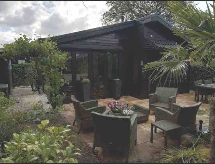 Larixlodge. Um chalé independente em um grande jardim da cidade com grandes árvores, flores, frutas e galinhas. Lugar tranquilo. Totalmente equipado; aquecimento central, cozinha, banheiro. Construído com materiais orgânicos. Atrás do chalé, um terraço privativo para os hóspedes. "...um lugar mágico no meio da cidade" Perto do centro da cidade, do 'mercado Haagse' e do Zuiderpark e da praia. Há duas bicicletas disponíveis, uma maneira fácil de visitar a cidade, ou a natureza: dunas e praia, também no inverno agradável para uma caminhada refrescante.