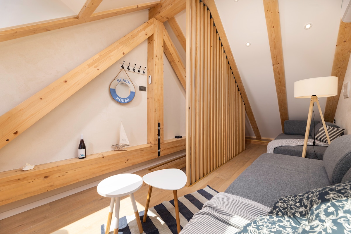 Ap. Toš is situated on the high first floor of a renovated traditional house, located in the heart of a coastal village and is furnished in moderen style. Ap.consists of living room with kitchen, bedroom, sleeping gallery and bathroom and is suitable for families, 2-6 people. Guests have access to a wonderful private garden, situated just 40 m from the house (accessible by stairs). Local beach is accessible just a few steps from the garden. We also have a parking- lot reserved, with E charger