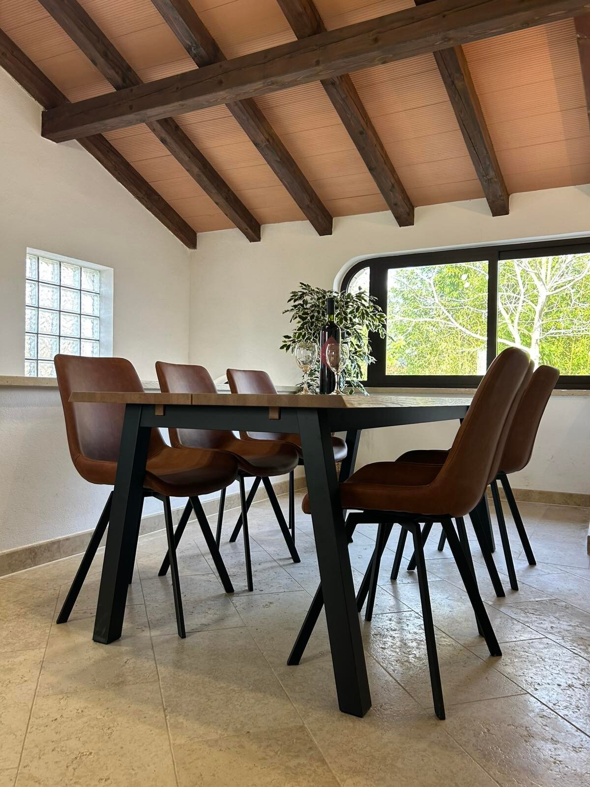 A casa foi projetada principalmente para o desfrute da família e para receber amigos com lareira, boa comida, vinho e fogueira. É por isso que tem uma mesa e bancos grandes. Nós a decoramos ao nosso gosto, todos os móveis são feitos de madeira. Ao decorá-la, não nos guiamos pelo fato de que tudo deve ser harmonizado e adequado, mas pelo fato de que deve ser bonito, confortável e funcional para nós. Como, com o tempo, tivemos a ideia de alugar, esperamos que todos os hóspedes que se encontrarem nela também se sintam bem e confortáveis.