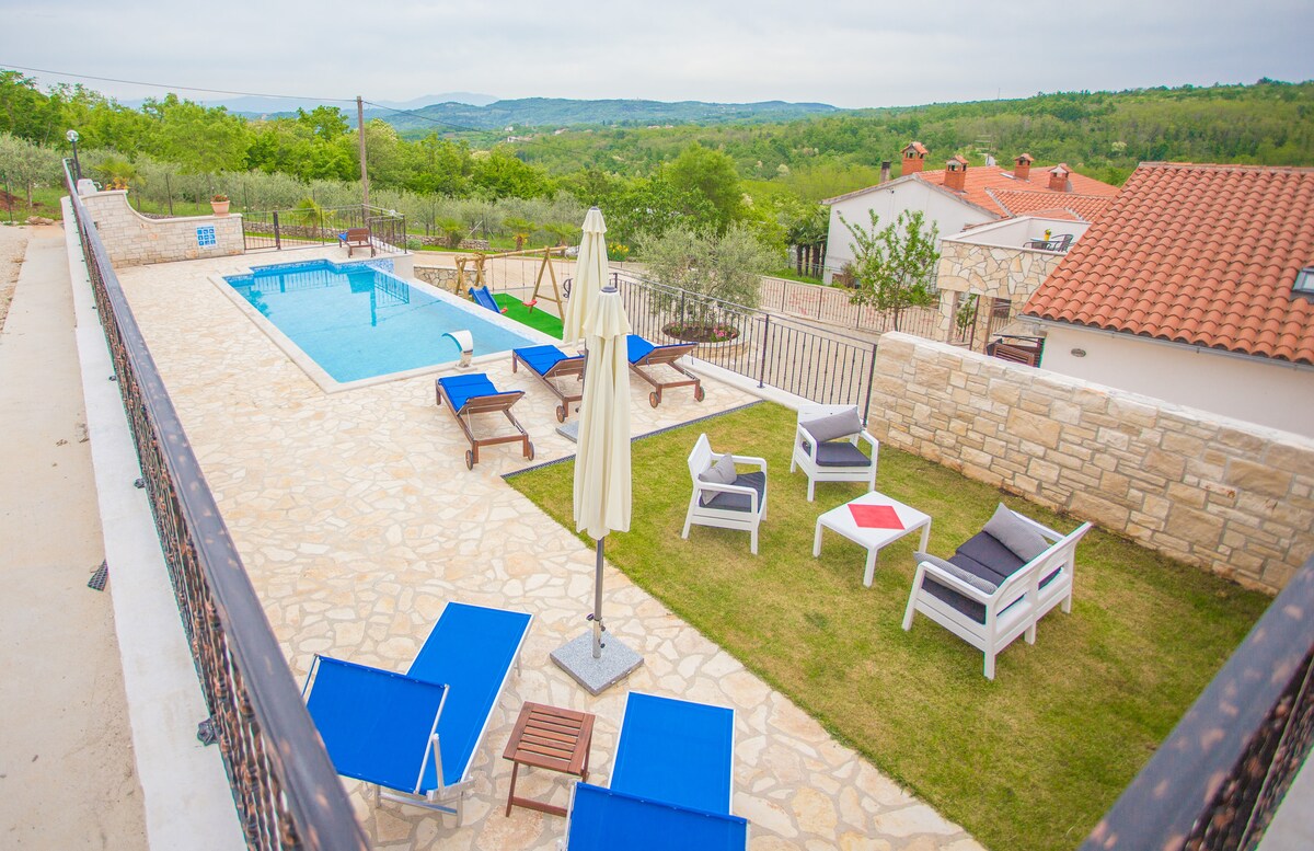 A villa Zoro está situada no centro da Ístria, perto de Pazin. O lugar é pequeno com habitantes muito encantadores. A superfície de uma moradia é de 70 m2 com dois pisos. No piso térreo fica a cozinha e no andar de cima os quartos.O importante é um espaçoso jardim com uma piscina de 48 m2 e churrasqueira com mobiliário exterior. Toda a experiência das suas férias será complementada pelo estilo ístrio do jardim, rodeado por vegetação. Em frente à entrada do jardim há um parque de estacionamento.