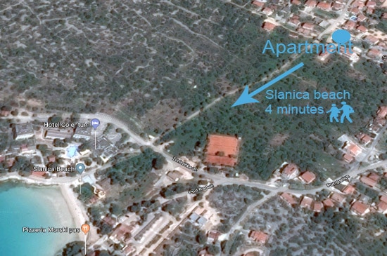 Apartment Slanica 2+2 is situated in an good location 350 m far from the sea in Murter. Apartment is equipped with tv, air condition, oven, FREE Wi-Fi internet connection. In the apartment can sleep 2 persons on the main beds and 2 persons on a sofa bed in the living room. The apartment has a bathroom with a shower. There is a living room which can be used for sleeping. There is an open barbecue.