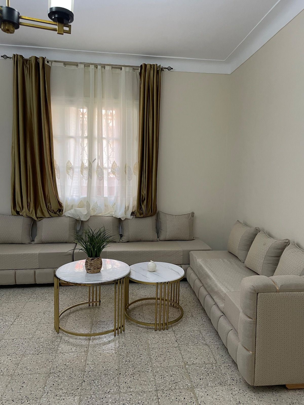 Séjournez dans une villa haut de gamme alliant confort, élégance et raffinement : piscine 5x4 m (1,50 m de profondeur), hamam traditionnel pour vos moments de détente Trois chambres spacieuses climatisées avec dressing Une grande climatisation couvrant tout le rez-de-chaussée. Une cuisine moderne ouverte sur une terrasse avec grande table 6 personnes, store roulant motorisé et barbecue. Deux salles d’eau avec douches italiennes. Il vous sera demandé 5000 Dinars de frais de ménage à la sortie