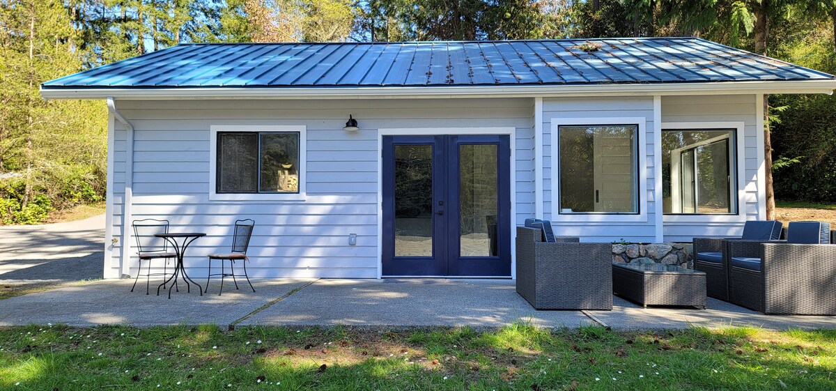Casa de hóspedes de design contemporâneo no noroeste. Muita luz solar e excelentes vistas para o Estreito, Montanhas e uma abundância de vida marinha, águias, veados, raposas e outros animais selvagens. Quadra de tênis privativa com cestas de basquete. Enseada privada para lançar seu caiaque ou apenas uma grande piscina de maré. Nota; A casa dos proprietários está na propriedade. O chalé fica a aproximadamente um campo de futebol de distância da casa principal, proporcionando sua própria privacidade. Os proprietários normalmente estão sempre na propriedade.