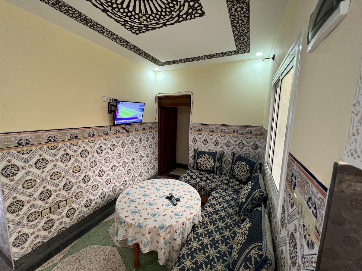 Passe uma estadia agradável neste alojamento confortável , mobilado, equipado, seguro, com ar condicionado,com estacionamento vigiado gratuito, perto do centro da cidade, faculdades, faculdades , hospitais e clínicas , perto do mercado central, Hammams e perto do souk . Este apartamento tem uma sala de estar com televisão, dois quartos , cozinha equipada com pratos, máquina de lavar roupa e casa de banho. Reserve apenas através do Whatssap