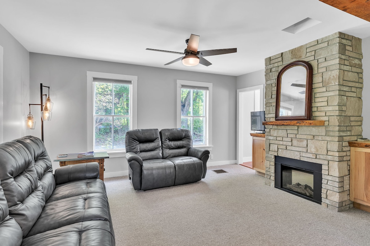 Adorável casa de hóspedes com 3 quartos, lareira e fibra
