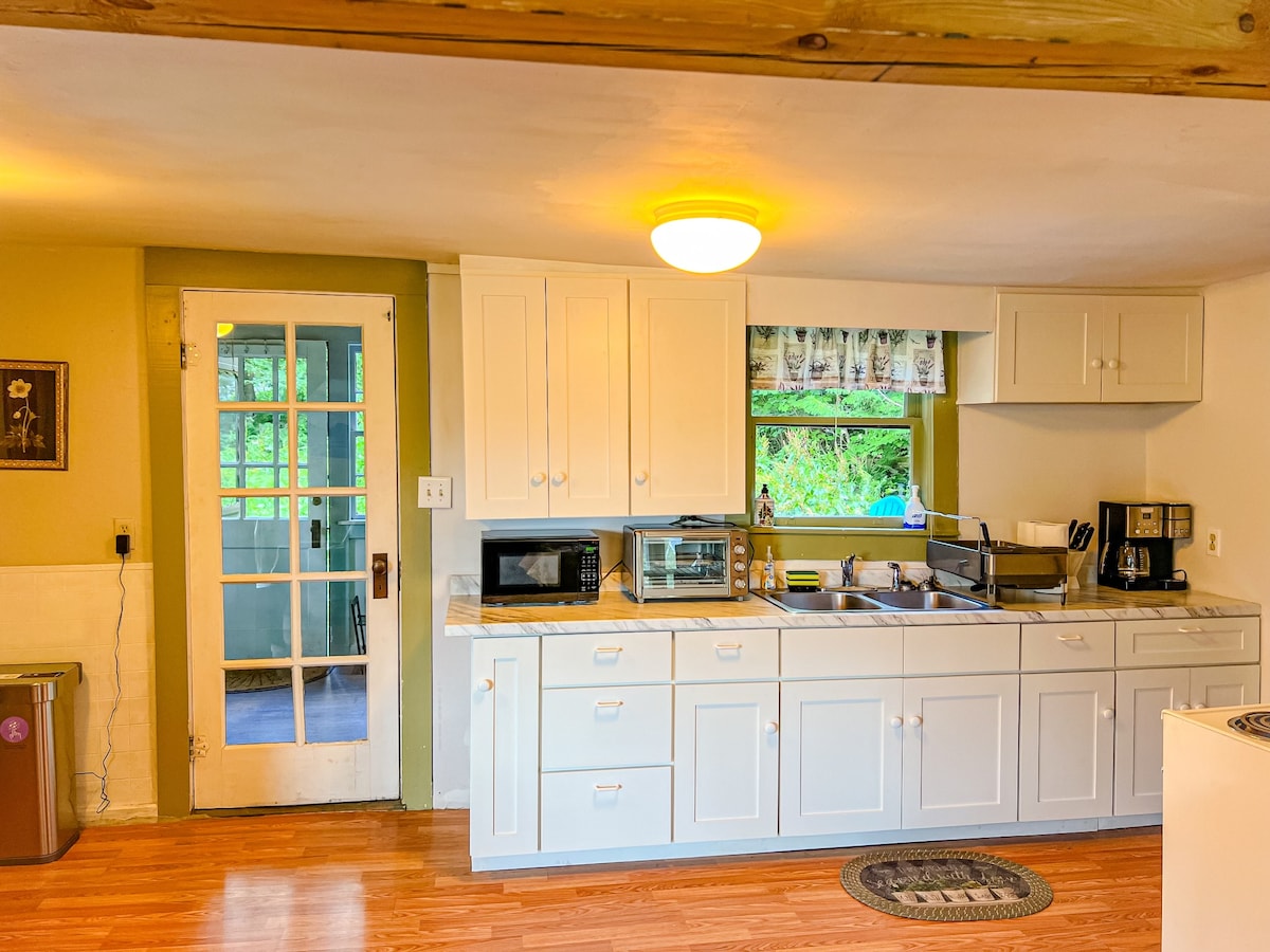 Depois de um longo dia de caminhadas, ciclismo ou esqui, venha dar uma olhada em nossa encantadora casa de campo histórica. Datado de meados dos anos 1800, foi uma das primeiras escolas da região, hoje está repleto de todos os luxos modernos que se precisa. Nossa varanda pitoresca é perfeita para observação de pássaros ou folhas. O interior inclui tetos altos, um quarto e um loft aconchegante, ambos com camas queen size. A cultura francesa fica a apenas 10 minutos de carro; a cultura de Vermont é abundante com xarope de bordo e moradores locais calorosos.