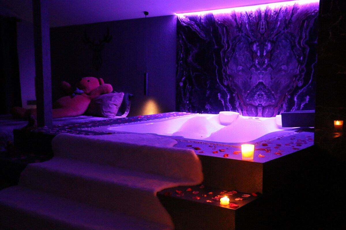 Há uma jacuzzi XXL no nosso apartamento cuidadosamente preparado. Existem 2 smart TVs de 58 polegadas (147 metros quadrados) na sala de estar e a cama de frente para a jacuzzi. A nossa suíte no terraço foi concebida com uma sala de estar, cama, jacuzzi e cozinha da ilha interdependente. Não há compartimento do quarto, etc. Temos uma cozinha onde pode cozinhar e uma lareira onde pode cozinhar no nosso terraço com uma varanda de vidro no exterior. Temos a certeza que terá uma estadia feliz no nosso espaço. Boas festas com antecedência:)