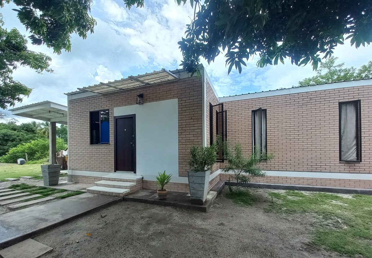 Casa campestre con cuartos amplios bien airados y grandes ventanales que hacen contacto con la naturaleza que dejan entrever amaneceres espectaculares. Área social bastante amplia, con muebles cómodos y confortables, corredores de descanso que hacen contacto con la hermosa vegetación propia del lugar, interactuando con hamacas nativas para sentirse relajado y lleno de paz y tranquilidad, Palmas cocoteras, prados, jardines, kiosko de descanso y amplia piscina parqueo e iluminación.