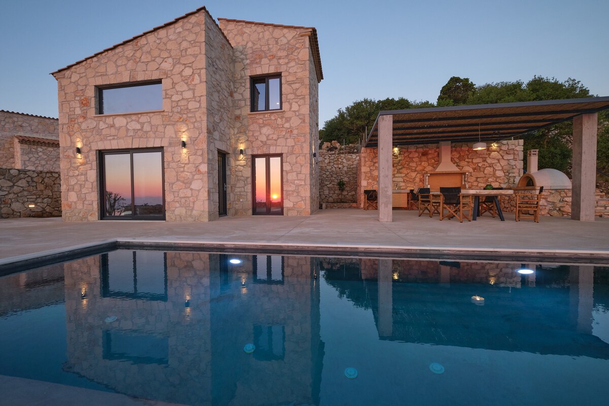 As moradias de pedra tradicionais, Orfos Villas, têm quatro moradias que acomodam 4 a 6 pessoas. A Villa JOGIA oferece uma piscina privada e está totalmente equipada para atender a todas as suas necessidades. A moradia foi cuidadosamente decorada com uma rica seriedade para detalhes usando mobiliário artesanal e tradicional para dar um estilo único e alto padrão de conforto. Localizado em Agios Nikola, em Volimes, um dos locais mais idílicos da ilha e oferece vistas mágicas sobre as águas cristalinas do Mar Jónico.
