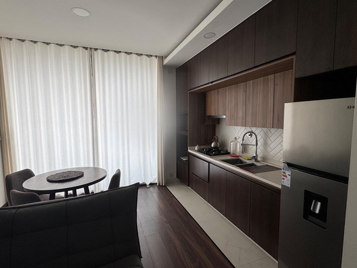 Desfrute de um apartamento tranquilo e elegante, ideal para descansar ou trabalhar. Localizado a poucos minutos de parques, restaurantes e áreas de interesse. O edifício tem grandes áreas comuns, segurança 24 horas por dia, 7 dias por semana e tudo o que precisa para uma estadia confortável. Totalmente equipado para se preocupar apenas em desfrutar.
