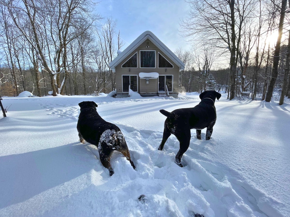Retiro privado em 45 acres, a 8 km da estrada principal. Rio Salmão a 20 minutos de carro, trilhos de snowmobile do outro lado da estrada. Cabana acolhedora privada, cama queen size e futon. Esta é toda uma área com uma casa de banho privada. A casa de banho tem chuveiro de tamanho completo, área da cozinha, um micro-ondas, frigorífico, máquina de café e grelhador interior. Chá, café, água fornecida. Churrasco no alpendre da frente. Trilhos florestais, vida selvagem e privacidade. Não é permitido fumar ou usar cigarros eletrónicos na cabine. Perfeito para retiros ou apenas para relaxar e respirar