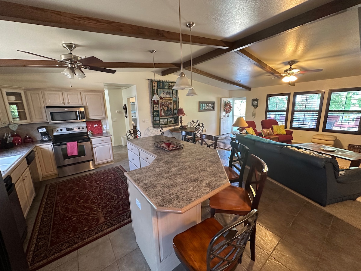 Fuja para o condado de Osage, onde o céu acontece para sempre e os moradores locais tratam você como parte da família. Esta fazenda de meados do século foi recentemente renovada com uma vibração leve e arejada de fazenda e terminou com todos os luxos modernos. Descanse de um longo dia explorando a pradaria Osage e saboreie um pouco de vinho na tranquila área de estar ou jogue alguns jogos de tabuleiro na mesa de beliche de grandes dimensões. Com todas as comodidades de um lar, você com certeza vai querer voltar ao nosso pedacinho do coração.