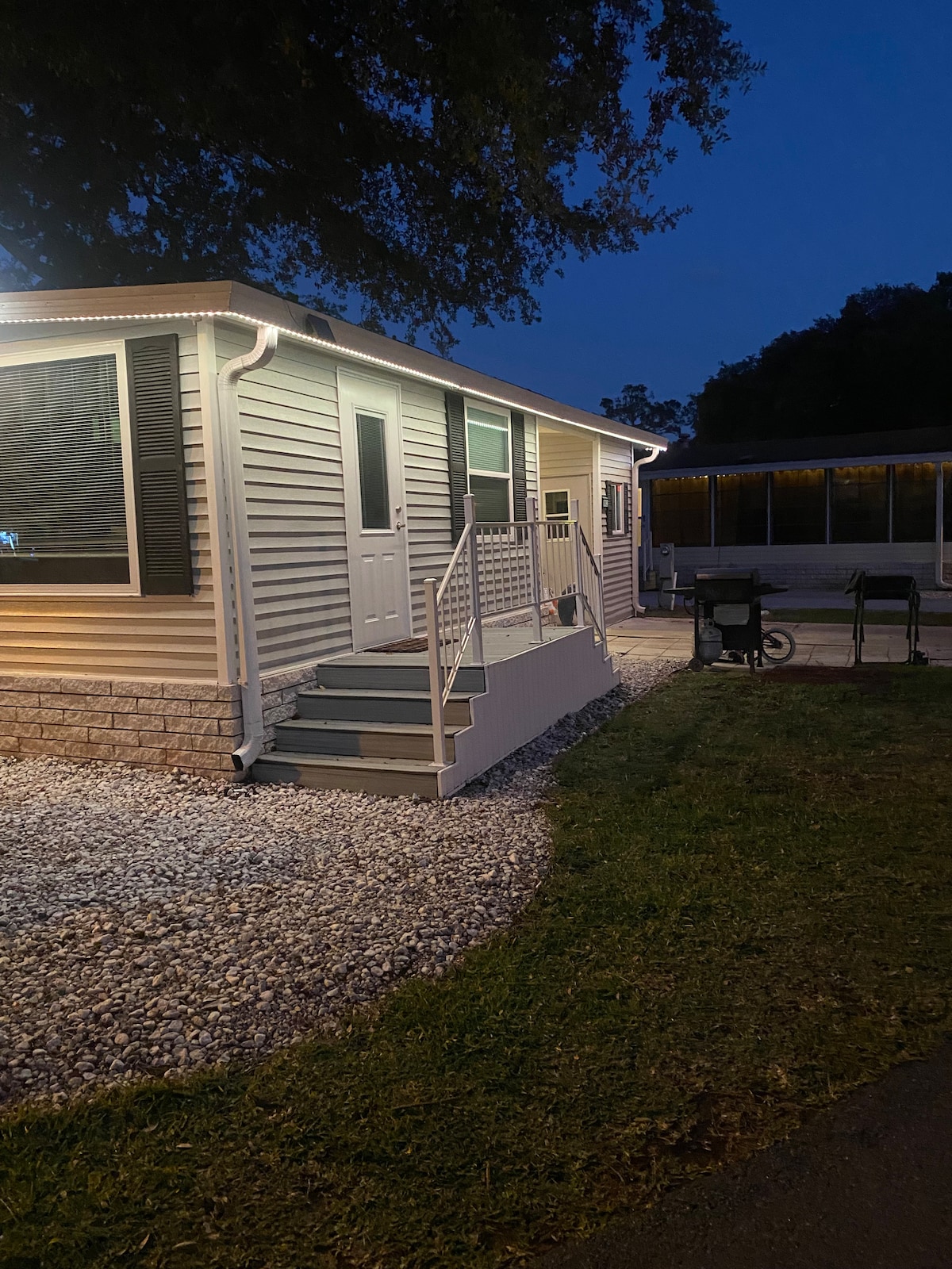 Damos-lhe as boas-vindas à Bitty Bliss, a sua escapadela aconchegante na Tiny Cottage! Localizado a apenas 20 minutos da Disney e da Universal, com lojas e restaurantes a apenas 5 minutos de distância, é perfeito para relaxamento e aventura. Desfrute de comodidades fantásticas como pickleball, minigolfe, um novo ginásio e uma sala de recreação - tudo sem fumo, sem animais de estimação e sem complicações, sem taxas de resort ou estacionamento! Durma confortavelmente na cama queen de um quarto ou no sofá-cama super aconchegante, acomodando até quatro hóspedes. Charme, conforto e diversão num só lugar