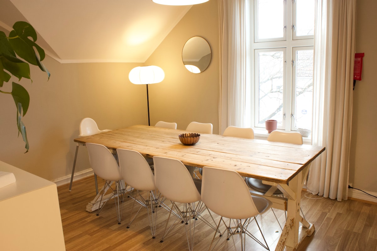 Nosso loft é espaçoso e cheio de luz, no 4º andar de um belo pátio de Torshov. Adequado para um casal, um grupo de amigos ou uma família com crianças. Quarto de casal adorável. Sala de estar espaçosa com sofá-cama de casal. Sótão com colchão de solteiro. Cozinha totalmente equipada. Banheiro com banheira/chuveiro e máquina de lavar. Localização ideal perto de lojas, restaurantes, Torshov Park e Torshovdalen, a 10 minutos a pé de Grunelløkka e a 10 minutos de ônibus do centro.