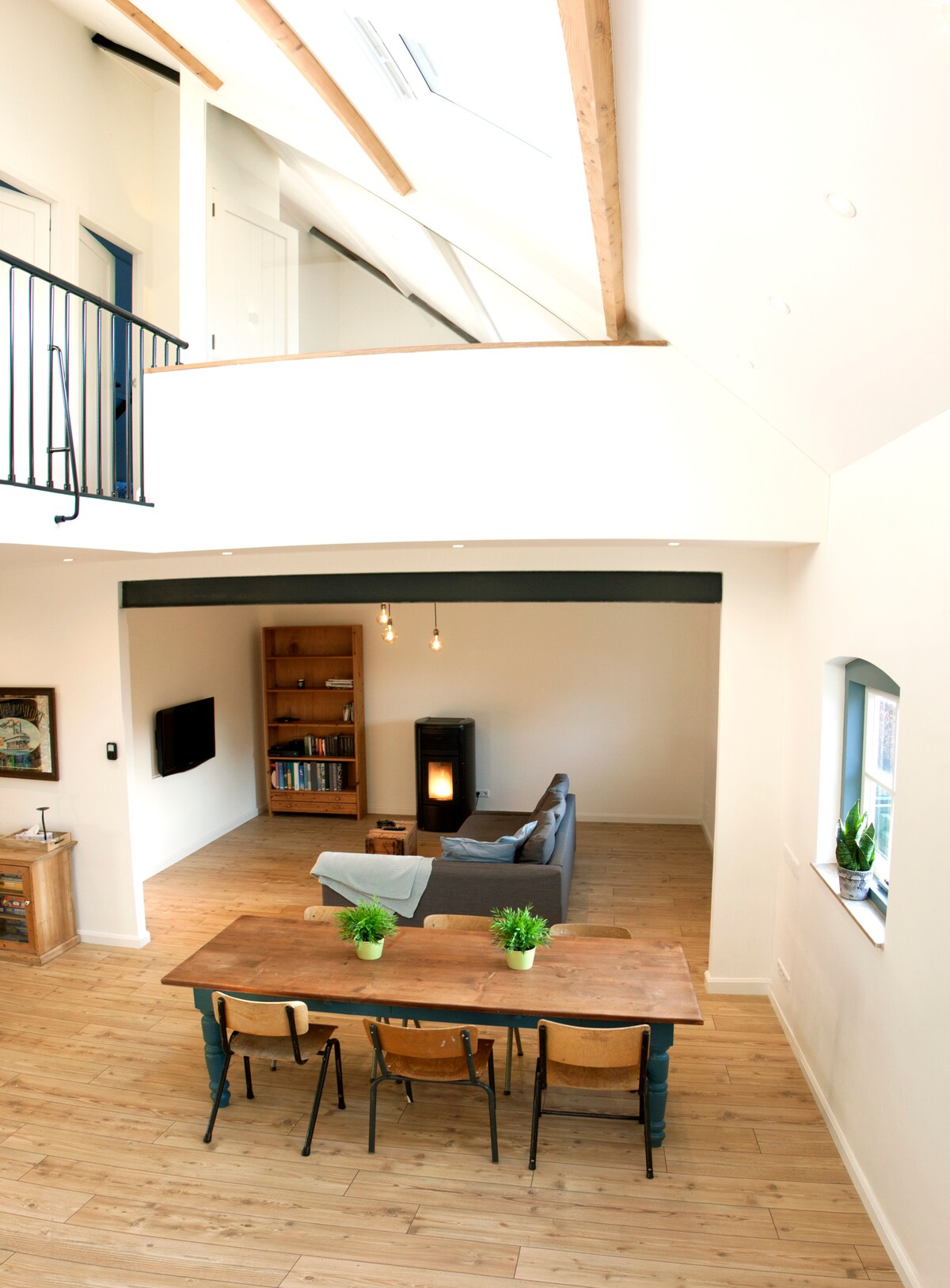 Nossa casa de fazenda do século XIX inclui um edifício que restauramos nos últimos anos como uma casa de trabalho e de hóspedes. Nesta casa de hóspedes encontrará uma nova cozinha, biblioteca / sala de estar com sofá-cama, uma grande sala de jantar aberta e uma área de trabalho com mezanino e 3 quartos (para dormir) no primeiro andar.