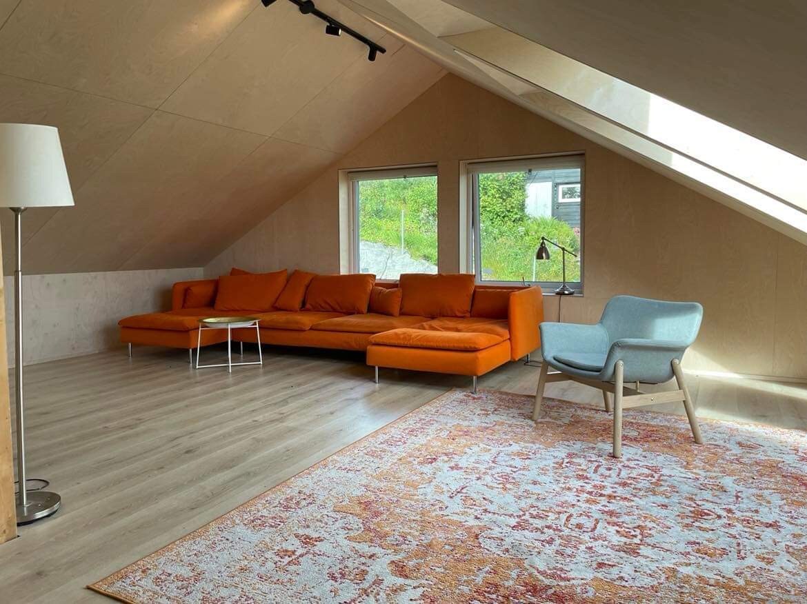 Seu próprio apartamento com dois quartos duplos, vaso sanitário e chuveiro. Sala de estar espaçosa com um canto de cozinha que contém tudo o que você precisa para cozinhar. Há uma máquina de lavar louça e uma máquina para lavar roupas. Há também uma geladeira, cafeteira, etc. e uma grande mesa de cozinha para as refeições com tudo o que você precisa, e um sofá de canto. Você tem sua própria área externa com um terraço e um jardim para visitar. É possível pescar na costa. Temos também um carregador para carro elétrico.