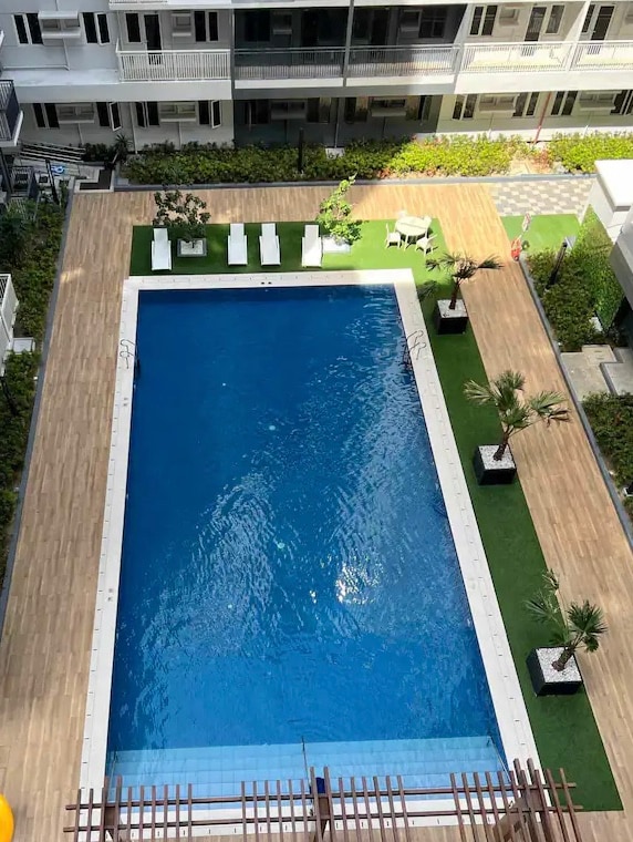 O nosso espaço está centralmente localizado, a uma curta distância a pé do Atria Park Districk, Hospital Qualimed, Ateneo, Seda Hotel e S&R Shopping. Fica a poucos minutos de Festive Walk, SM City, Plazuela e Smallville. O quarto principal tem a sua própria sanita/banheira. A segunda sanita/casa de banho está localizada na sala. O espaço tem Wi-Fi, máquina de lavar roupa + secadora, fogão de indução, forno/torradeira, micro-ondas, caldeira de água, televisão de 55 polegadas e chuveiros aquecidos.