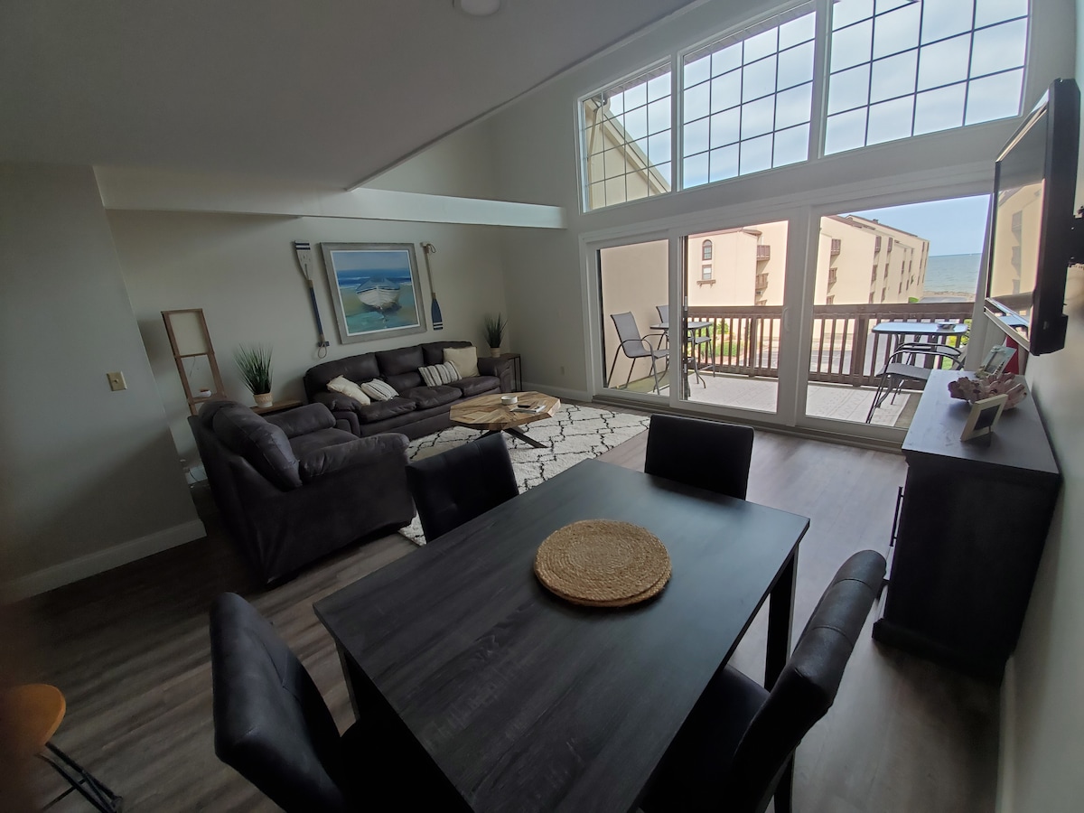 Third floor condo w/ stunning view of Lake Erie. Great for family vacation or weekend getaway. Take back stairs to giant, kid-friendly pool, hot tub, playground, and beach. Only 1 block to Jet Express and 2 blocks to restaurants, stores, parks, and pier. Enjoy a newly renovated bathroom, a full kitchen, dining area, 55" TV, and new sound system. Bedroom has two single beds. Sunroom is perfect retreat to relax and enjoy the view and serves as second bedroom with a day bed and pullout sofa.