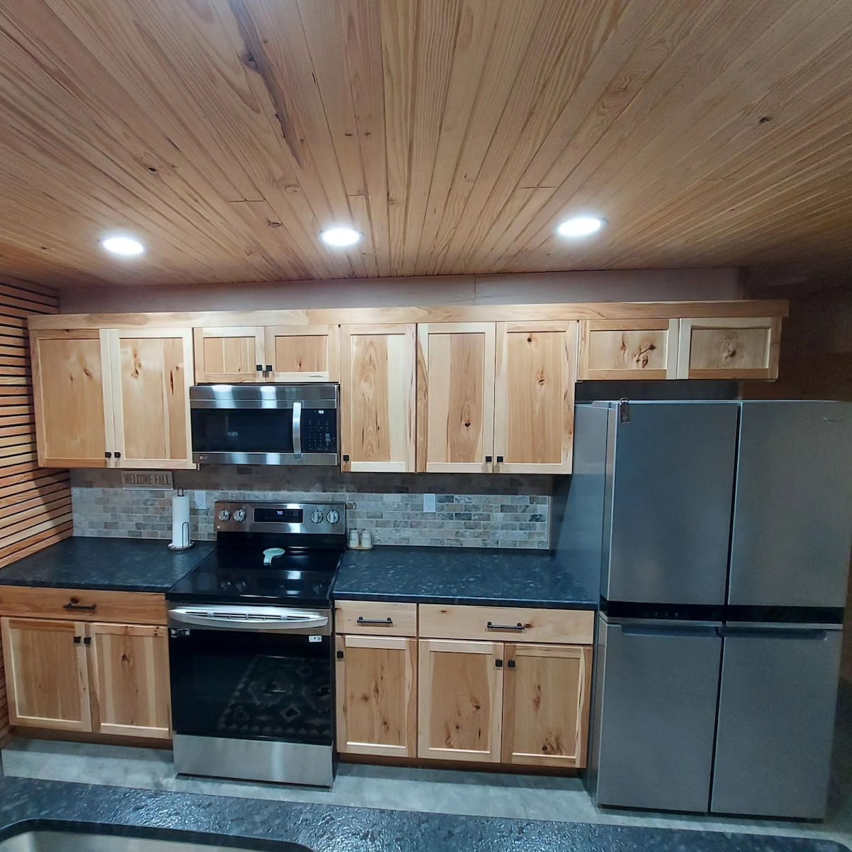 Enjoy a stylish experience at our cabin in the woods. It has an open floor plan. We're just minutes away from lake fun on Grand Lake. Close to boating, shopping, and dining. We are on 22 acres with a creek for seasonal fishing, walking trail, fire pit for relaxing, and plenty of peace and quiet. We have a 50 amp RV spot available at extra cost for extra family. We have a couple kayaks we can launch. We live close by, so we will be available for any questions or needs you may have.