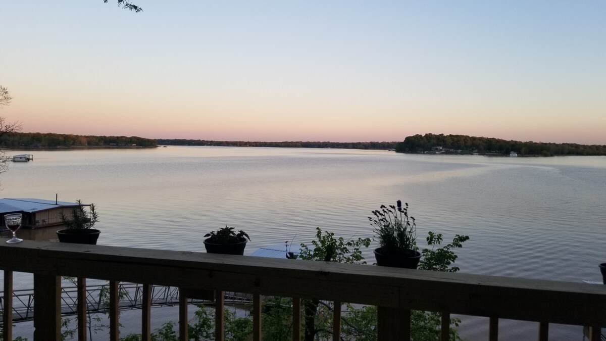 Relax at our family friendly lakefront cabin. Clean and functional living space. Large deck with beautiful views of Grand Lake. Shorefront access with stairs. Enjoy sunrises and sunsets on the deck or in the sunroom. Kitchen is fully stocked with all necessities. Extra linens, towels, and toiletries provided. Gas grill on upper deck. Only a 10 minute drive to Grove, OK. Please note there are several stairs to get up to the cabin itself (it’s how we get such a beautiful view :).