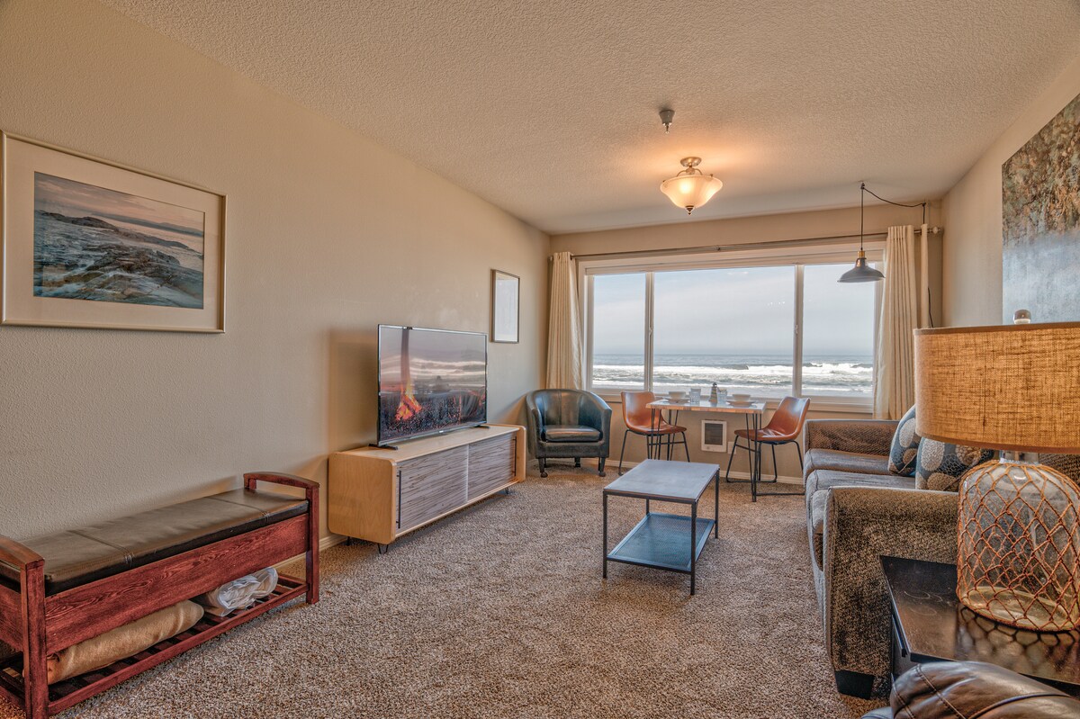 Find seaside serenity at this vacation rental situated on a bluff overlooking the Pacific. This 2-bed, 2-bath condo features sleeping arrangements for 8, all of the modern essentials of home, and access to the resort-like amenities of the Cavalier Condominiums. Enjoy a dip in the pool, unwind in the sauna, or walk down to the white-sand shoreline of Lincoln Beach. Whether you're exploring Depoe Bay or grabbing a bite to eat in nearby Lincoln City, this is the perfect Pacific Northwest home base!