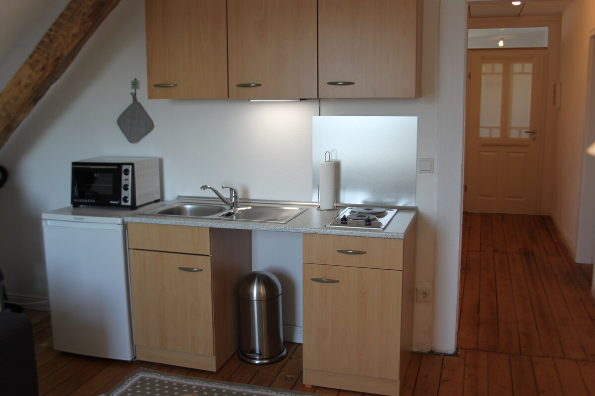 Einliegerwohnung: quarto com cama de casal (200x200) sala de estar com sofá-cama cama extra a pedido cama de viagem das crianças a pedido secretária TV/rádio cozinha chuveiro totalmente equipado com máquina de lavar roupa WC secador PET permitido