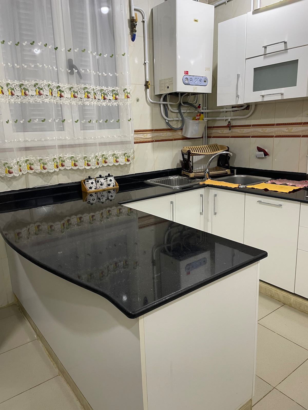 Venha desfrutar de uma estadia inesquecível nos nossos confortáveis apartamentos, localizados à beira-mar em Dellys. As nossas casas estão mobiladas, têm ar condicionado e água corrente 24 horas por dia. A residência está idealmente localizada, perto de mercearias, restaurantes, cafés e pontos turísticos como o antigo porto e a casbá de Dellys. Os apartamentos (apt.) estão localizados no 2º e 3º andar. Apartamento com fachada direta para o mar.