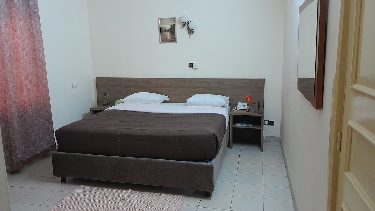 Descubra o conforto e a conveniência do nosso hotel, localizado no vibrante e seguro bairro Ouaga2000, no coração de Ouagadougou. Os nossos quartos modernos oferecem vistas deslumbrantes da cidade a partir da varanda, com comodidades como secretárias, pequenos frigoríficos, máquinas de café e televisões inteligentes, tornando-os a escolha perfeita para viajantes de negócios e de lazer. Desfrute de um ambiente acolhedor numa das zonas mais procuradas da cidade.