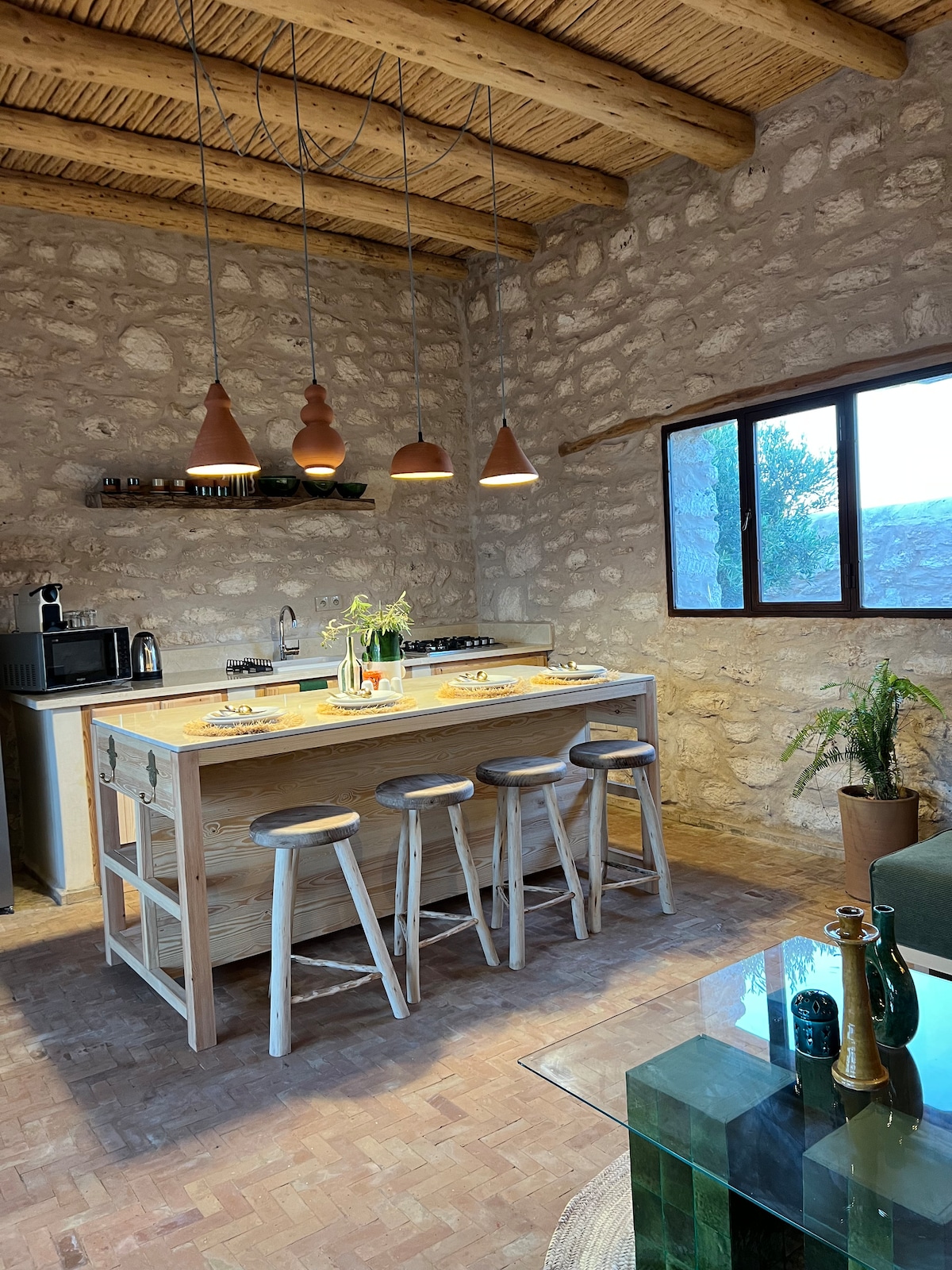 Vida simples de um nível envolta na natureza. Casa de campo independente com 2 quartos, privada, acolhedora e espaçosa, no interior e no exterior. Espaço exterior isolado, zonas de churrasco e de refeições, casa de banho grande, cozinha totalmente equipada e lounge interior, design requintado e autêntico. Refúgio perfeito para relaxar da realidade . Um lugar para se sentir inspirado, relaxado e regenerado: um lugar verdadeiramente raro e espiritual rodeado por Argan e oliveiras, com sol dourado sem fim. Esteja preparado para experimentar o verdadeiro Marrocos.