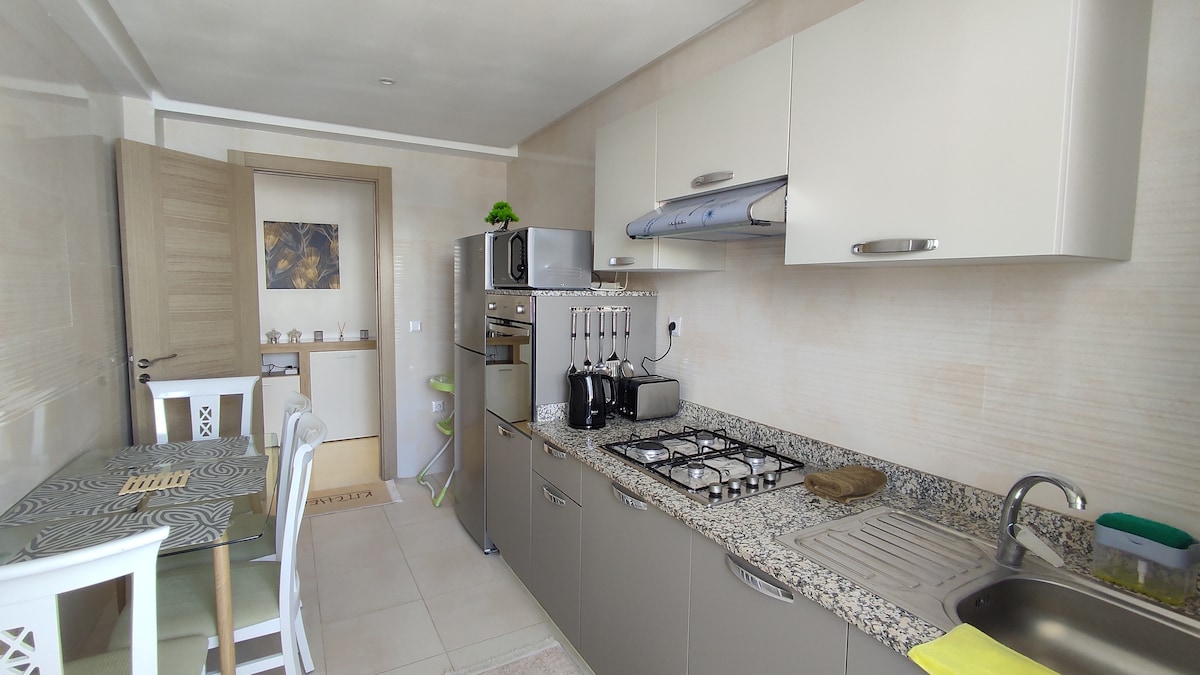 Tudo foi planeado no meu apartamento para que não perca nada. Hotéis de luxo e serenidade com vista para o Grand 5⭐ (Termunis hotel) Residência Verdoyante 🌿 no centro da cidade, aninhado na residência mais bonita da cidade. 🌟 As vantagens da sua estadia: ✔ Residência premium com espaços verdes e segurança ✔ Localização estratégica: perto da estação ferroviária, lojas e restaurantes ✔ Sem vis-à-vis para total tranquilidade ✔ Decoração profissional