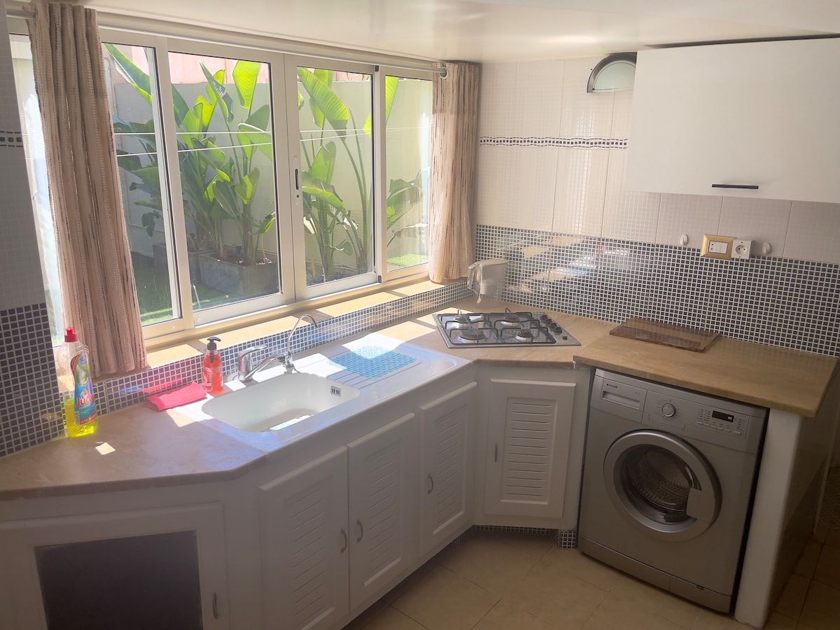 Esqueça as suas preocupações neste espaço espaçoso e sereno. Descubra este estúdio numa excelente localização, com ar condicionado, com um sofá-cama confortável muito grande para 2 pessoas e mais dois colchões para os seus amigos ou crianças, uma cozinha totalmente equipada, uma casa de banho moderna e um jardim encantador com espreguiçadeira. Aproveite a proximidade da praia para escapadelas relaxantes. A calma perfeita espera por si!