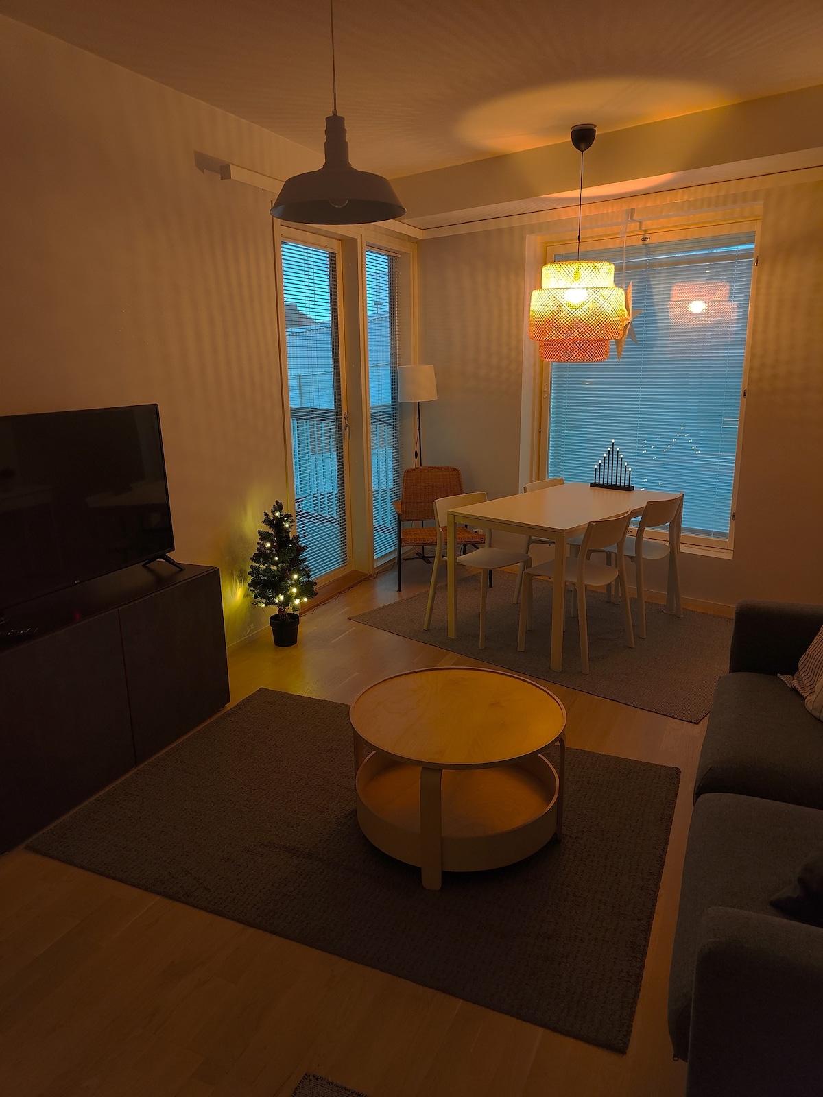 Elegante apartamento escandinavo de dois quartos com a melhor localização em Oulu – todos os serviços estão ao seu alcance! O apartamento tem móveis de alta qualidade, cozinha totalmente equipada e estação de trabalho ergonômica. O luxo do dia a dia é trazido por uma máquina de café e chocolate quente e uma Smart TV com serviços de streaming. O preço inclui lençóis, toalhas e limpeza final de nível de hotel. Além disso, o confortável sofá pode ser usado como cama extra para duas pessoas. A escolha perfeita para férias e viagens de negócios!