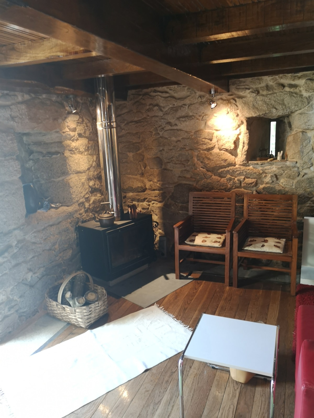 Casa boutique galega em um espaço aberto (sem quartos) com capacidade máxima para 2 adultos e uma criança. Equipada com uma cama de casal e um sofá-cama. O design é caracterizado por superfícies naturais que misturam materiais nativos, como pedra e madeira. Os acessórios cuidadosamente selecionados e a grande atenção aos detalhes criam um ambiente acolhedor e único.