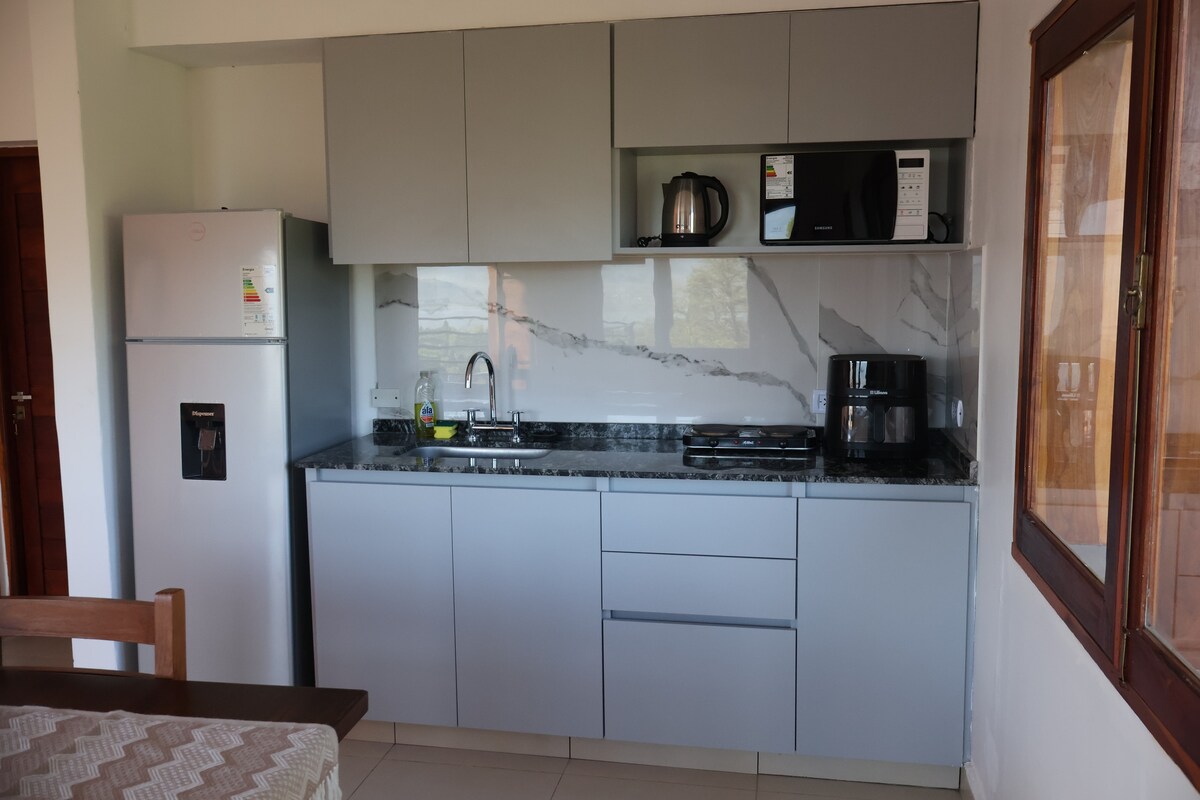 Ambiente acolhedor muito bem distribuído com cama de casal e beliche para 2 pessoas. Ideal para raparigas e famílias de casais. - Cozinha equipada - Casa de banho privada. - Grelhador no espaço comum para uso partilhado - aquecedor a lenha + aquecedor radiante portátil -WIFI - TV com canais por cabo (+40 canais) -Cochera Techada