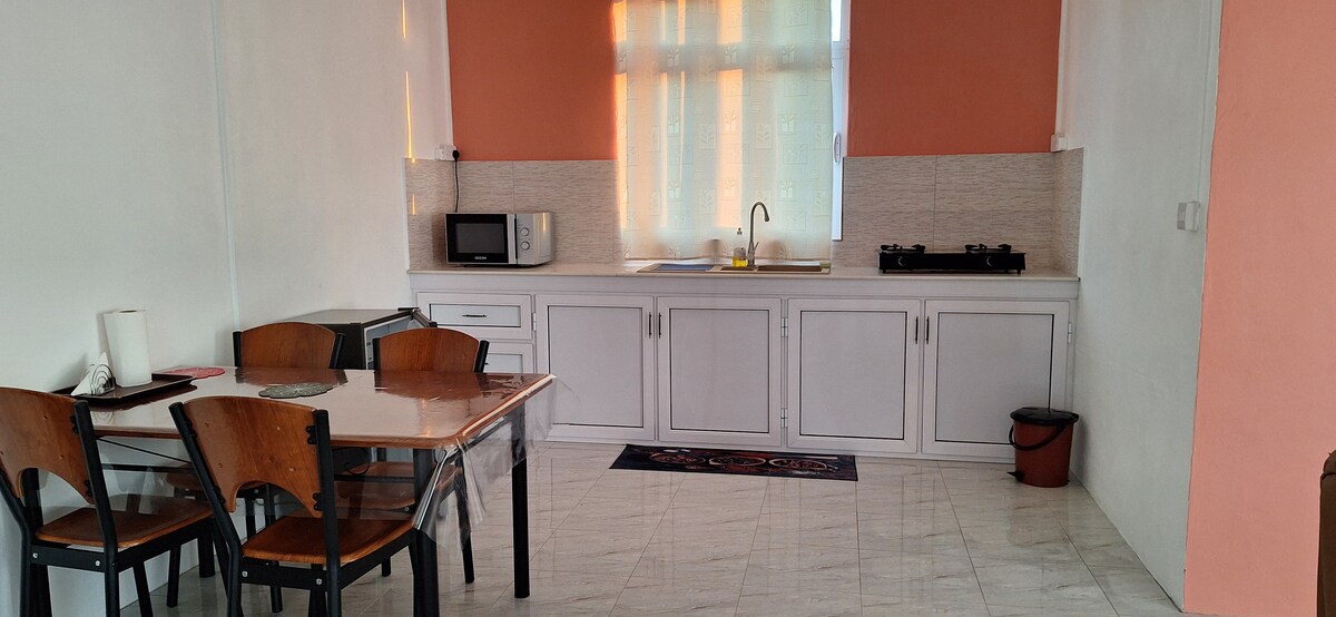 Charming Lagoon-View Apartment in Rodrigues Desfrute de uma escapadela tranquila na ilha neste apartamento acolhedor com vista para a lagoa. Perfeito para casais, viajantes que viajam sozinhos ou famílias pequenas, oferece conforto, privacidade e acesso fácil a tudo o que Rodrigues tem para oferecer. Localização privilegiada A 5 minutos de carro de Port Mathurin (lojas, mercados, restaurantes) A 15 minutos das praias mais bonitas da ilha Perto de trilhos para caminhadas, miradouros e experiências locais O espaço Luminoso e arejado, com luz natural e brisa marítima, o apartamento foi concebido para uma vida descontraída na ilha. Área de estar confortável com sofá Mesa de jantar para refeições ou trabalho Entrada privada para total independência Vida AO AR livre O seu terraço privado é o ponto alto: Assentos ao ar livre Vistas deslumbrantes para a lagoa e para o mar Perfeito para café ao nascer do sol ou bebidas ao pôr do sol. Cozinha totalmente equipada. Fogão a gás Micro-ondas Chaleira elétrica Utensílios de cozinha e utensílios Ideal para pequenos-almoços rápidos ou refeições caseiras completas. Descubra Rodrigues Descubra a autêntica vida insular: habitantes simpáticos, mercados vibrantes, gastronomia local e um ritmo tranquilo que não encontrará em mais lado nenhum. Porquê ficar aqui Vistas para a lagoa Localização central Apartamento privado e confortável Equilíbrio perfeito entre relaxamento e exploração Reserve agora e desfrute de Rodrigues a partir do seu próprio retiro tranquilo.