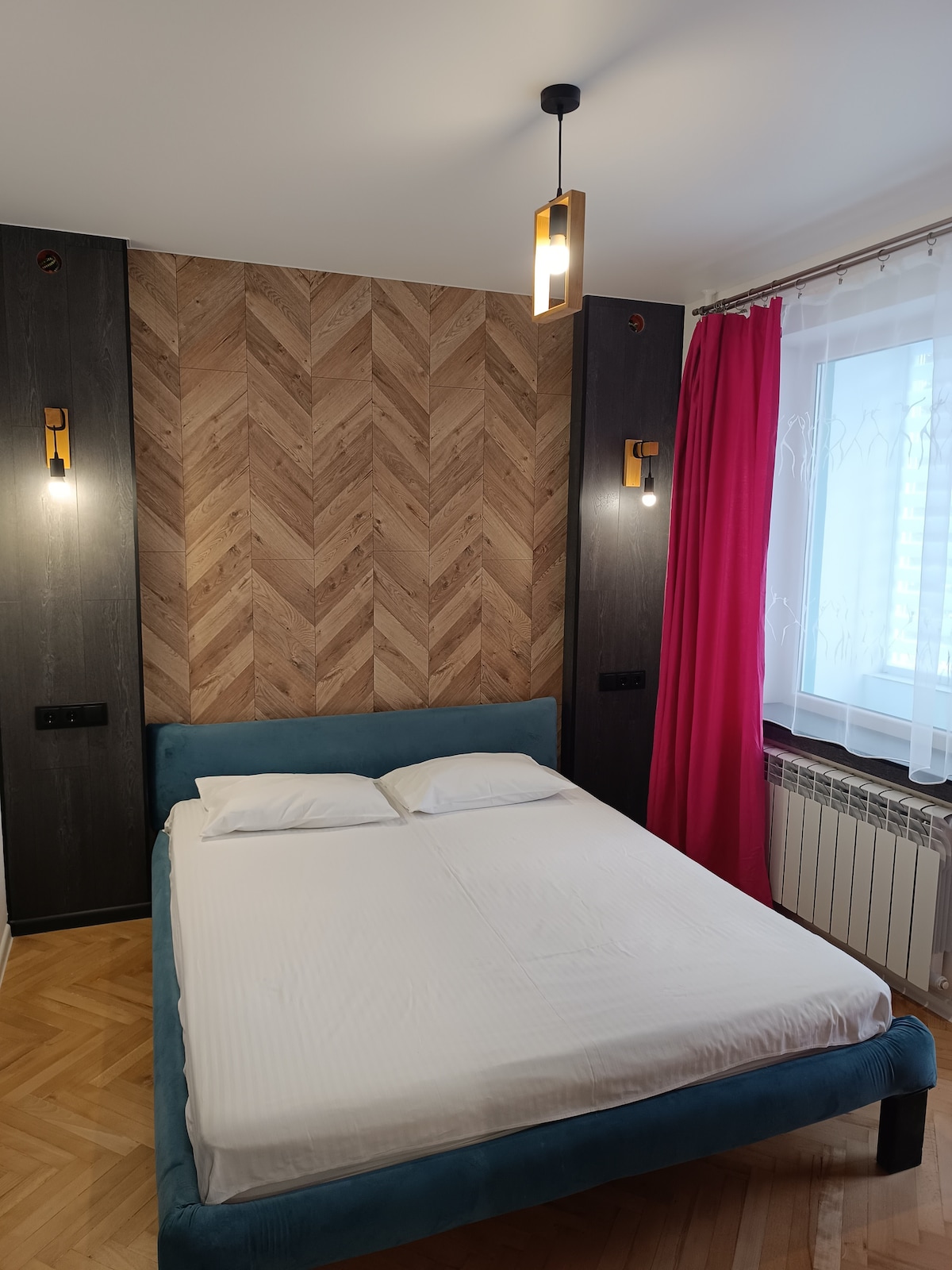 Ótimo apartamento com renovação europeia. Um canto acolhedor com vista para o Estádio Arena-Lviv criará um bom humor para si. O apartamento tem um guarda-roupa, cama de casal com colchão ortopédico e sofá-cama dobrável, que pode acomodar quatro hóspedes. A roupa de cama e as toalhas estão sempre limpas. Água quente contínua, aquecimento autónomo, Internet , Wi-Fi. A cozinha está equipada com fogão, micro-ondas, chaleira eléctrica, frigorífico e pratos. O estacionamento sob a casa é pago e gratuito. Há supermercados nas proximidades