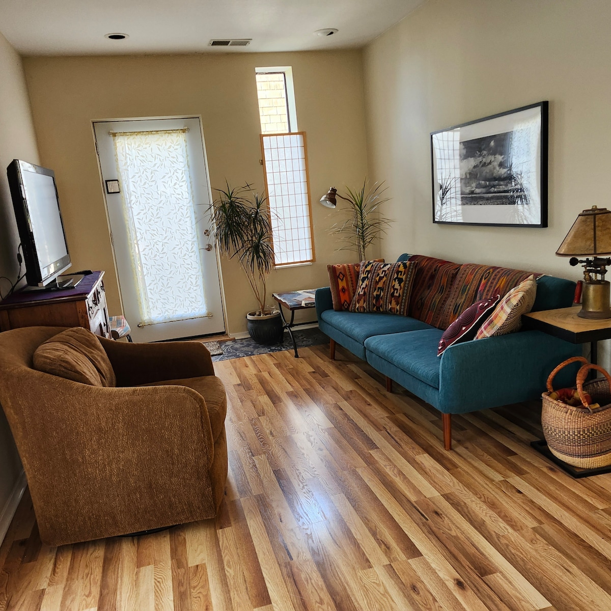 Localizado em Pacifica, CA, a um quarteirão da costa do oceano (3 minutos a pé da costa). Você pode ouvir os sons suaves do oceano em nossa rua tranquila. Com xeriscaping caracterizado por plantas locais e buganvílias, nossa pequena casa de praia azul tem uma grande varanda da frente com muita luz solar para relaxar e um pequeno deck no quintal para desfrutar do clima quente. Dentro, a sala de estar tem tetos de 14' com clarabóias. O quarto de hóspedes está totalmente mobiliado, assim como a cozinha e o quarto principal.
