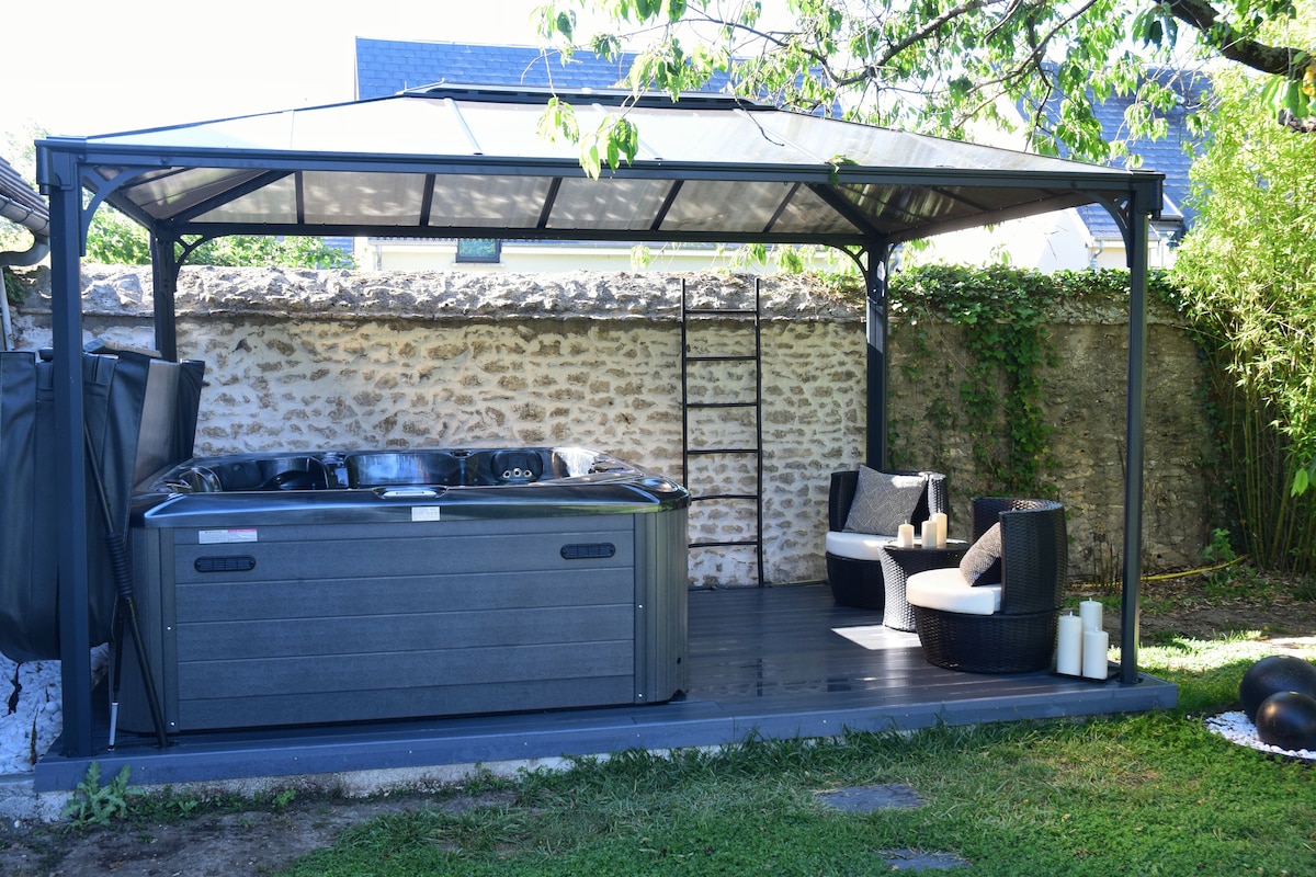 Sente a necessidade de se desligar? Localizados a uma hora de Paris, oferecemos a nossa suite de luxo com spa privado e sauna num ambiente calmo e revigorante, ideal para relaxar. O relaxamento e o bem-estar definem a sua estadia em La Croisée des Sens. O nosso spa está à sua disposição para que possa usufruir dos benefícios da hidroterapia: melhorar a circulação sanguínea, relaxar os músculos, promover um sono melhor e muitos outros benefícios.