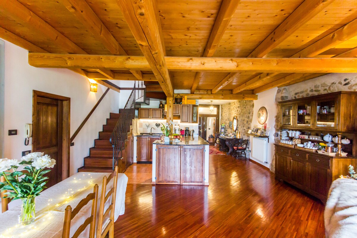Antigo celeiro de montanha de 1681, reformado com madeira, pedra e vidro. Vista panorâmica de bosques e vales, dois terraços floridos com redes e almofadas e uma lareira romântica, duas grandes salas de estar, três quartos tranquilos e um sótão luminoso. Mede 240 m² (em dois níveis) e está localizado a uma altitude de 630 metros em uma pequena vila ensolarada perto da floresta, no parque natural de Adamello. Experiência autêntica na natureza, muitas atividades possíveis.