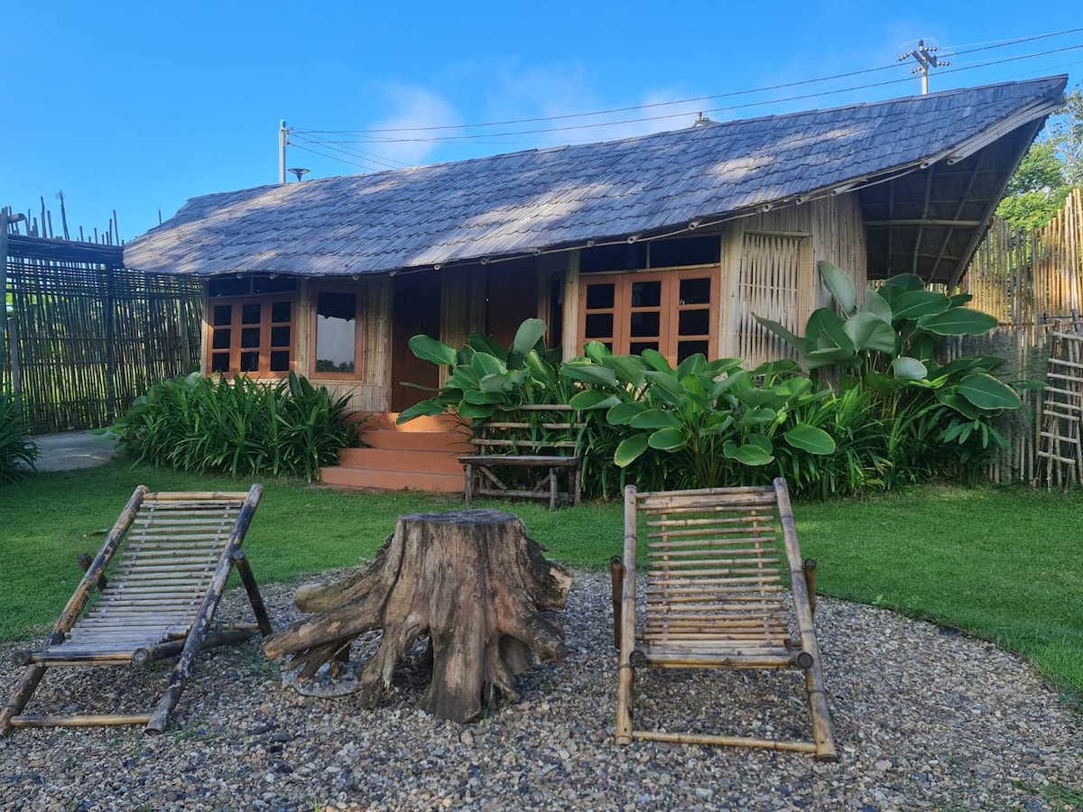 Mantemos as coisas simples aqui. 1 km a pé da rua de caminhada Pai. Ambiente tranquilo escondido de todo o barulho. Levante-se com o galo cantando de manhã com gato e cachorro brincando no jardim, caminhe no arrozal e alimente a vaca com banana durante o dia, e desfrute do pôr do sol da tarde. Todas as casas de campo equipadas com ar condicionado e banheiro privativo. Torradas simples de café da manhã, chá e café estão disponíveis pela manhã.