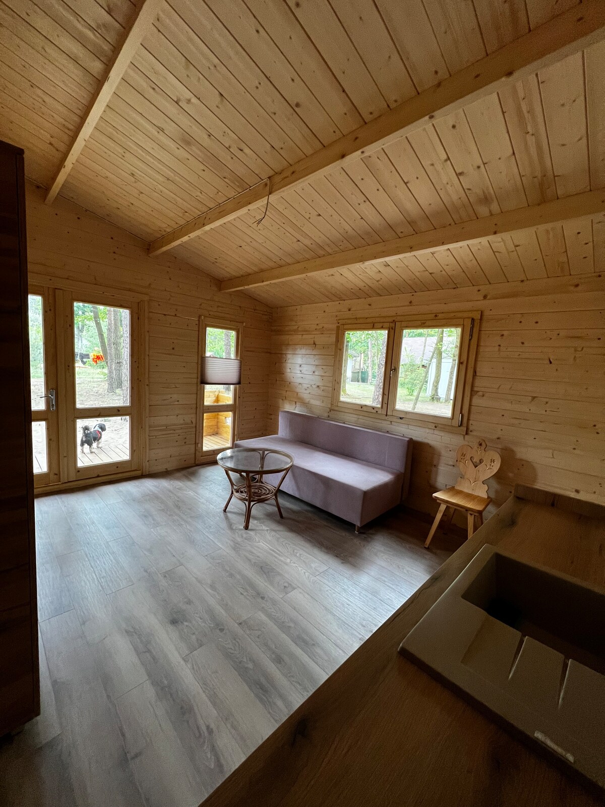 Wszyscy mieszkańcy tego miejsca noszą korony... LAS Domek drewniany na podniesieniu wśród koron drzew, duże przeszklenia, otwarta przestrzeń, tuż nad rzeką Liswartą. W tym miejscu przyroda dyktuje warunki. O poranku obudzi Cię śpiew ptaków, a do snu ukołysze szum wody. To tu poczujesz zapach świeżego, leśnego powietrza. Codziennie o poranku oferujemy Państwu w gratisie przepiękny koncert ptaków i nie da się ukryć, że każdego dnia jest to inna melodia.