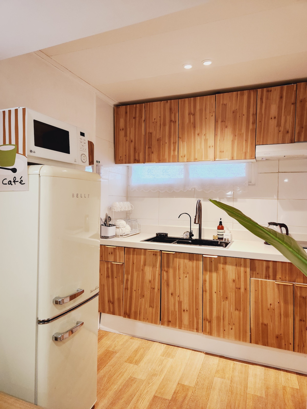 Esta é a Americano. É uma casa unifamiliar de dois andares com relvado e um caminho pedonal, perfeita para reuniões de família, e pode alojar até 10 pessoas (capacidade normal: 6 pessoas). 1.º andar Composto por uma sala de estar, cozinha, 1 quarto e uma casa de banho, também é adequado para pessoas com deficiência física. *Sala de estar: sofá, poltrona de massagem, TV, lareira, mesa de centro, cadeira alta, sistema de ar condicionado central *Cozinha: mesa de jantar, purificador de água, micro-ondas, máquina de café (grãos de café de alta qualidade fornecidos), air fryer, micro-ondas, frigorífico, Chaleira elétrica, máquina de lavar louça para 6 pessoas, diversos utensílios de mesa e de cozinha, condimentos variados *Quarto: Hwangtobang (2 camas individuais super) *Casa de banho: bidé, banheira, toalhas, secador de cabelo, champô, condicionador, gel de banho, sabonete para as mãos, pasta de dentes * Lavandaria: máquina de lavar roupa, máquina de secar roupa 2º andar *Quarto: quarto com ondol, ar condicionado de parede *Quarto: 1 cama queen, ar condicionado de parede *Sala de estar: piano digital, LG Styler, máquina de lavar roupa, sistema de ar condicionado central *Casa de banho: secador de cabelo, toalha, pasta de dentes, champô, condicionador, gel de banho, sabonete líquido para as mãos