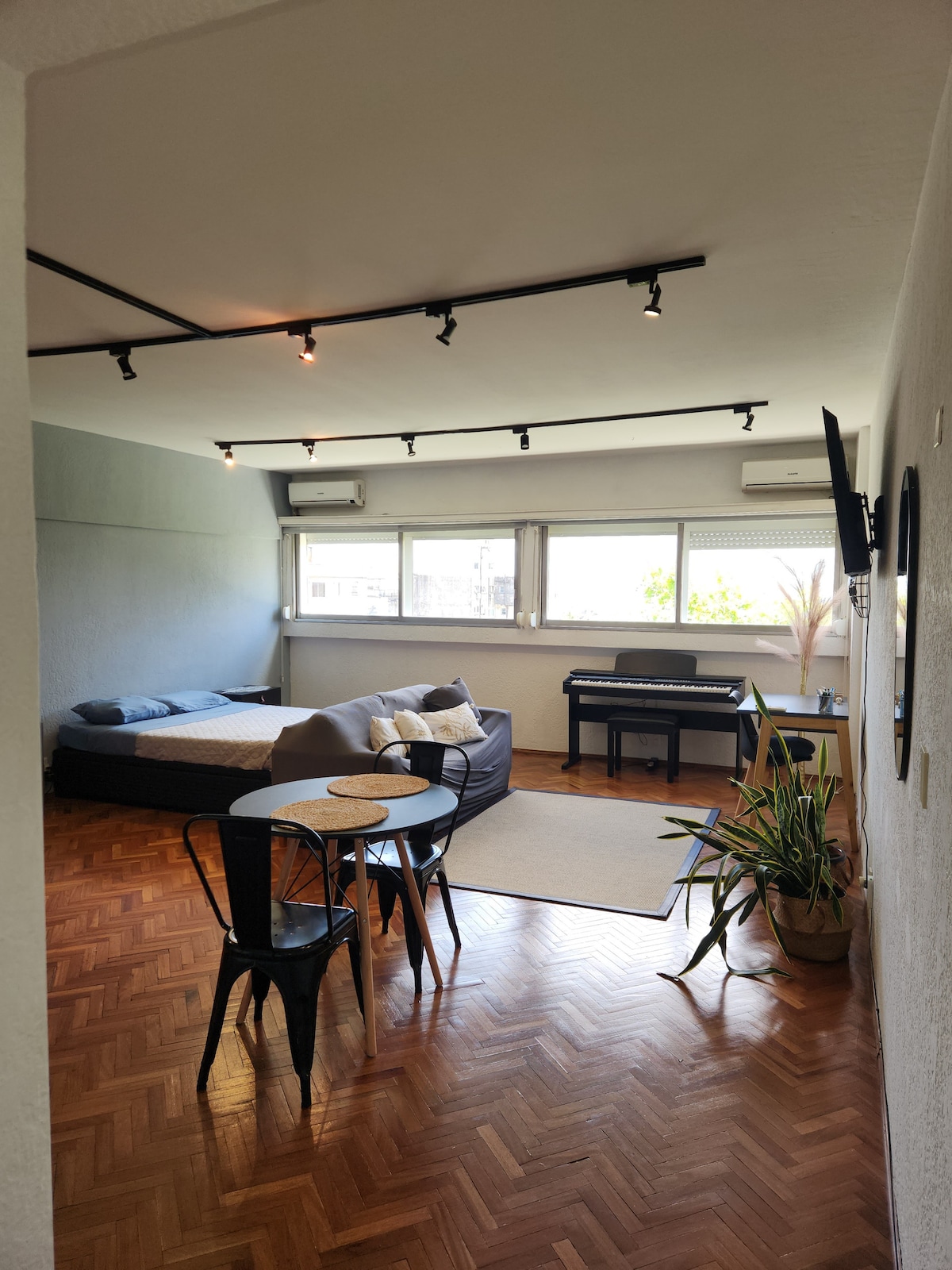 Monoambiente moderno em Aguada, totalmente equipado e pronto para ocupar. Tem ar condicionado, máquina de lavar roupa, TV, Wi-Fi, cozinha completa, frigorífico, micro-ondas e tudo o que precisa. Entregue com toalhas e roupa de cama. Localizado perto do Palácio Legislativo e a poucos passos da bela Av. Libertador com excelente ligação a transportes e serviços. Ideal para quem quer conforto e praticidade num ambiente central de Montevidéu. Supermercado a metros do edifício. Farmácia em frente.